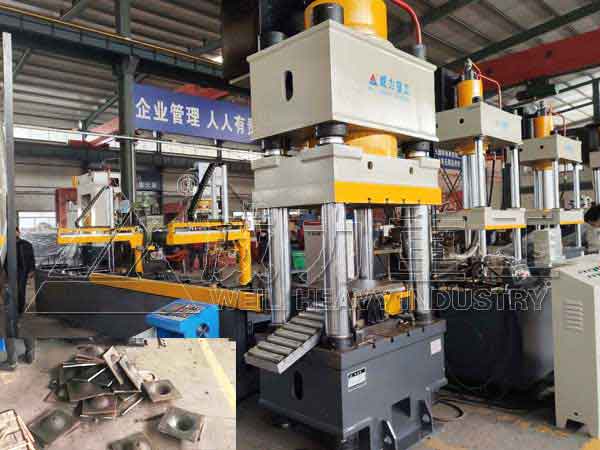 山東威力重工機床有限公司除了可以為客戶提供錨桿托盤模具外,還可設計定做錨桿托盤成型液壓機,根據錨桿托盤尺寸,選用不同噸位的錨桿托盤液壓機,常用有200噸、315噸、400噸、500噸、630噸、800噸、1000噸等。除此以外,為了提高生產效果,節省人力,公司還為客戶提供了錨桿托盤生產線。完成自動化生產,效果高,安全系數高。是目前國內各大礦業比較認可的一種錨桿托盤生產線。