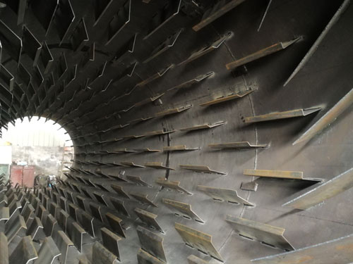 要想將干粉砂漿烘干到合理的水分,烘干機(jī)的安裝工藝和設(shè)計(jì)工藝非常重要,由于粉狀物料流動(dòng)性不如固體物料,干粉砂漿烘干機(jī)的安裝需要設(shè)計(jì)一個(gè)合理的傾斜角度,能讓物料在被烘干的過(guò)程中勻速流動(dòng),這個(gè)流速需要達(dá)到剛好物料到出口處時(shí)被烘干,所以傾斜角度的設(shè)計(jì)很重要。然后是設(shè)計(jì)工藝,粉狀物料會(huì)由于重力的作用沉積,要想充分將其烘干,必須進(jìn)行打散揚(yáng)起,讓高溫氣流從物料種穿過(guò),這就對(duì)筒體內(nèi)的設(shè)計(jì)工藝提出要求,除了安裝揚(yáng)料板,還要對(duì)排布位置,間距、密度等參數(shù)有一個(gè)合理的設(shè)計(jì)。