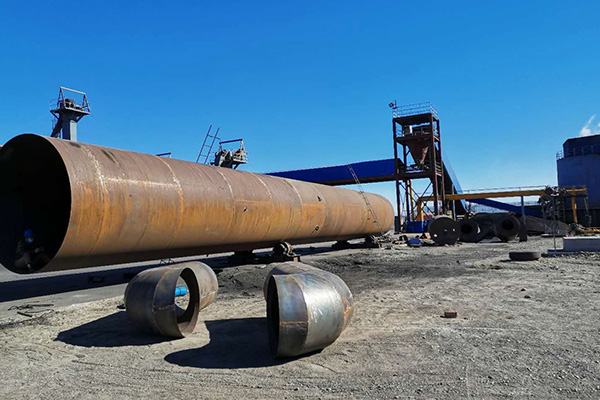 含水率高的粘土首先被鏟車送入給料器種,由于粘土粘性強,必須通過給料器均勻給料,才不會使烘干機的進料口堵塞。給料器分配的粘土通過輸送帶送入到加料管道進入加料端。加料管道的斜度要大于物料的自然傾角,以便物料順利流入烘干機內(nèi)。粘土烘干機的筒體呈現(xiàn)一定的傾斜角度,進料口高,出料口低,粘土從較高一端加入,熱氣流跟粘土從同一方向進入,與物料混合換熱,隨著圓筒的轉(zhuǎn)動物料受重力作用運行到較低的一端?;旧险惩恋胶娓蓹C尾部的時候,水分已經(jīng)被干燥,此時落入料倉內(nèi),烘干結(jié)束。